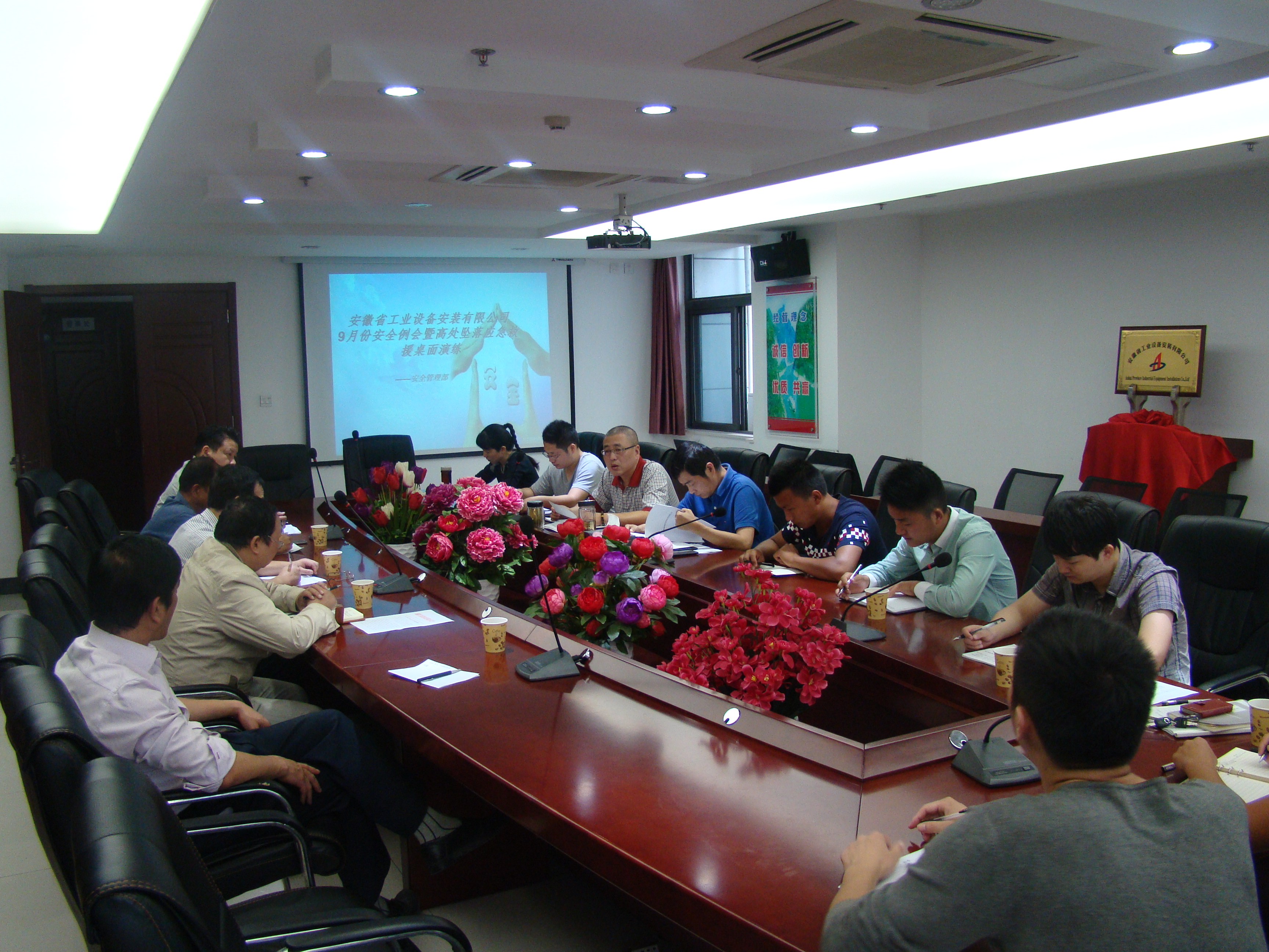 為增強公司員工的防墜減災意識,掌握應急的正確方法,確保事故來臨時公司應急預案能夠快速啟動,9月30日上午,公司在第一會議室召開了9月份安全例會暨應急預案桌面演練。公司副總經理劉安俊,安全管理部全體成員、各職能部門有關人員、各分公司安全科長及合肥地區(qū)在建項目專職安全員等近30人參會。