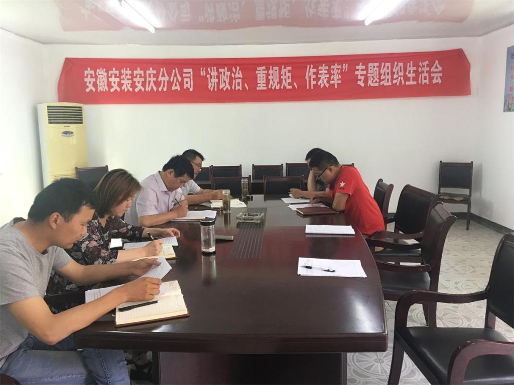 5月21日下午,安慶分公司黨支部召開” 講政治 、重規(guī)矩 、做表率”專題組織生活會,分公司全體黨員參加本次會議。會議由支部書記劉紅艷主持。