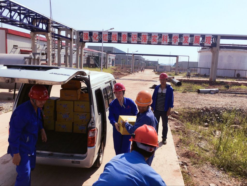 時(shí)值夏季,烈日炎炎,酷熱難耐。奮戰(zhàn)在一線員工們的身體健康狀況牽動(dòng)著公司領(lǐng)導(dǎo)的心。7月17日下午,安慶分公司經(jīng)理史崇松,黨支部書記劉紅艷深入一線,看望慰問奮戰(zhàn)在一線的施工人員,并帶上了清涼解暑的飲品,為他們在炎熱的夏季送去了一份清涼。
