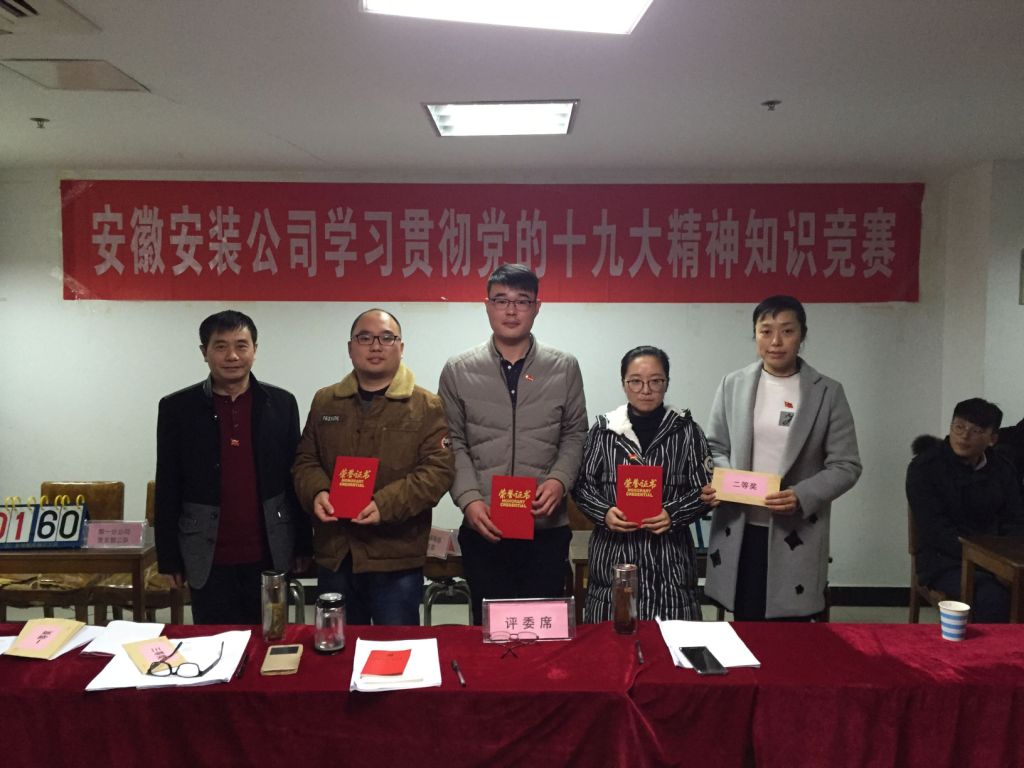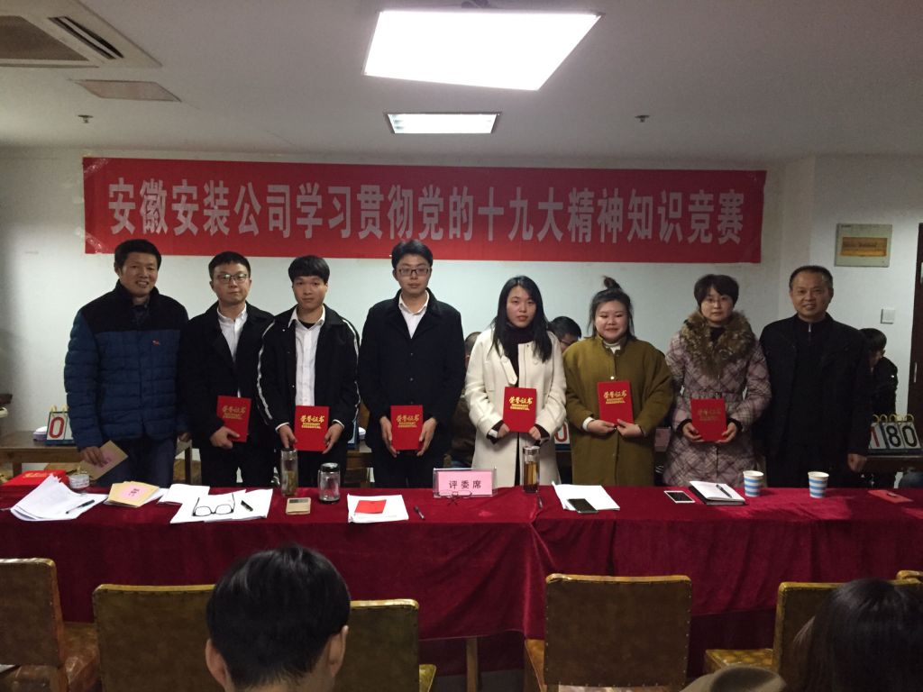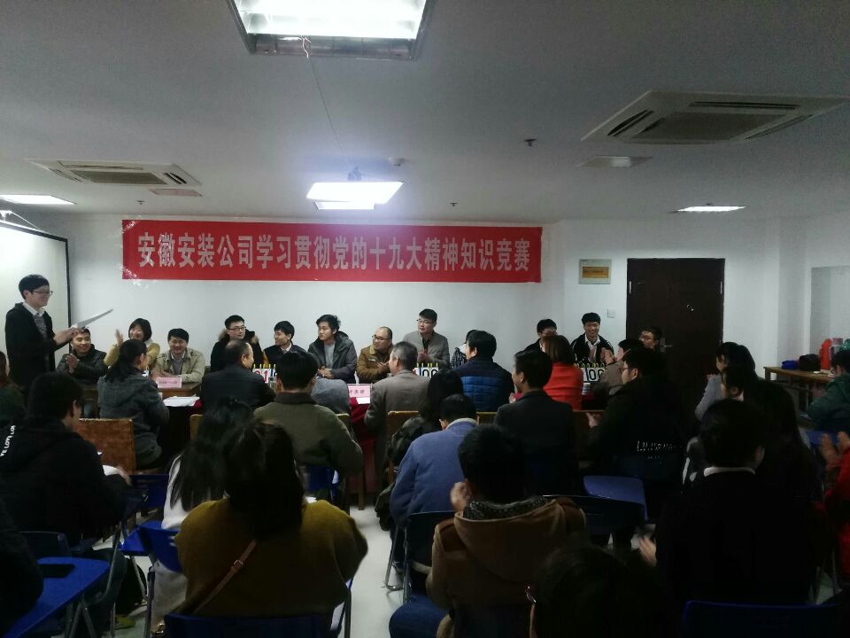 12月6日下午,安徽安裝公司學習貫徹黨的十九大精神知識競賽成功舉辦。來自公司機關(guān)及所屬各分公司黨支部8支代表隊24名選手參加比賽。