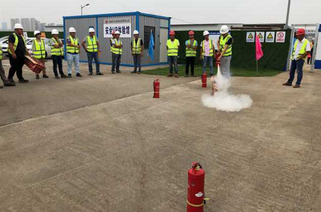 演練正式開始前,項目部全體人員在“安全消防演練”的紅色橫幅上鄭重的簽下了自己的名字。演練按預(yù)定方案進行,項目部安全員闡述了本次演練的目的和意義,介紹基礎(chǔ)的火災(zāi)消防知識,點明掌握火災(zāi)逃生的基本方法。項目管理公司安全工程師針對項目部可能存在的火災(zāi)隱患做了重點闡述,并指出項目部可能發(fā)生火災(zāi)的地點主要為生活區(qū),重點強調(diào)各班組長在生活區(qū)要做好宣傳帶頭作用,將火災(zāi)隱患扼殺在萌芽之中。項目技術(shù)負責人李冬現(xiàn)場講解并示范了常見的手提式干粉滅火器的使用方法,而后參演人員親自體驗了如何正確的使用滅火器。消防演練緊張有序,安全保證工作到位,演練達到預(yù)期效果。