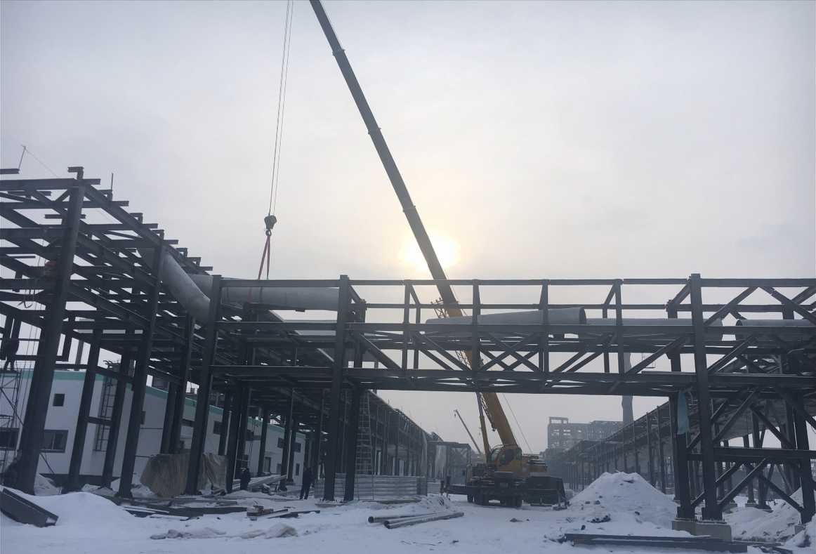 冬日施工中的新疆烏蘇管廊項(xiàng)目現(xiàn)場(chǎng)