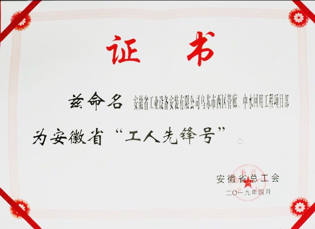 勞動(dòng)托起中國(guó)夢(mèng),奮斗建功新時(shí)代。4月29日上午,“安徽省慶祝‘五一’暨勞動(dòng)和技能競(jìng)賽先進(jìn)集體先進(jìn)個(gè)人表彰大會(huì)”在安徽大劇院隆重舉行。會(huì)上,安徽安裝公司新疆烏蘇管廊、中水項(xiàng)目部被授予安徽省“工人先鋒號(hào)”稱號(hào),這是公司首次獲得該項(xiàng)殊榮。