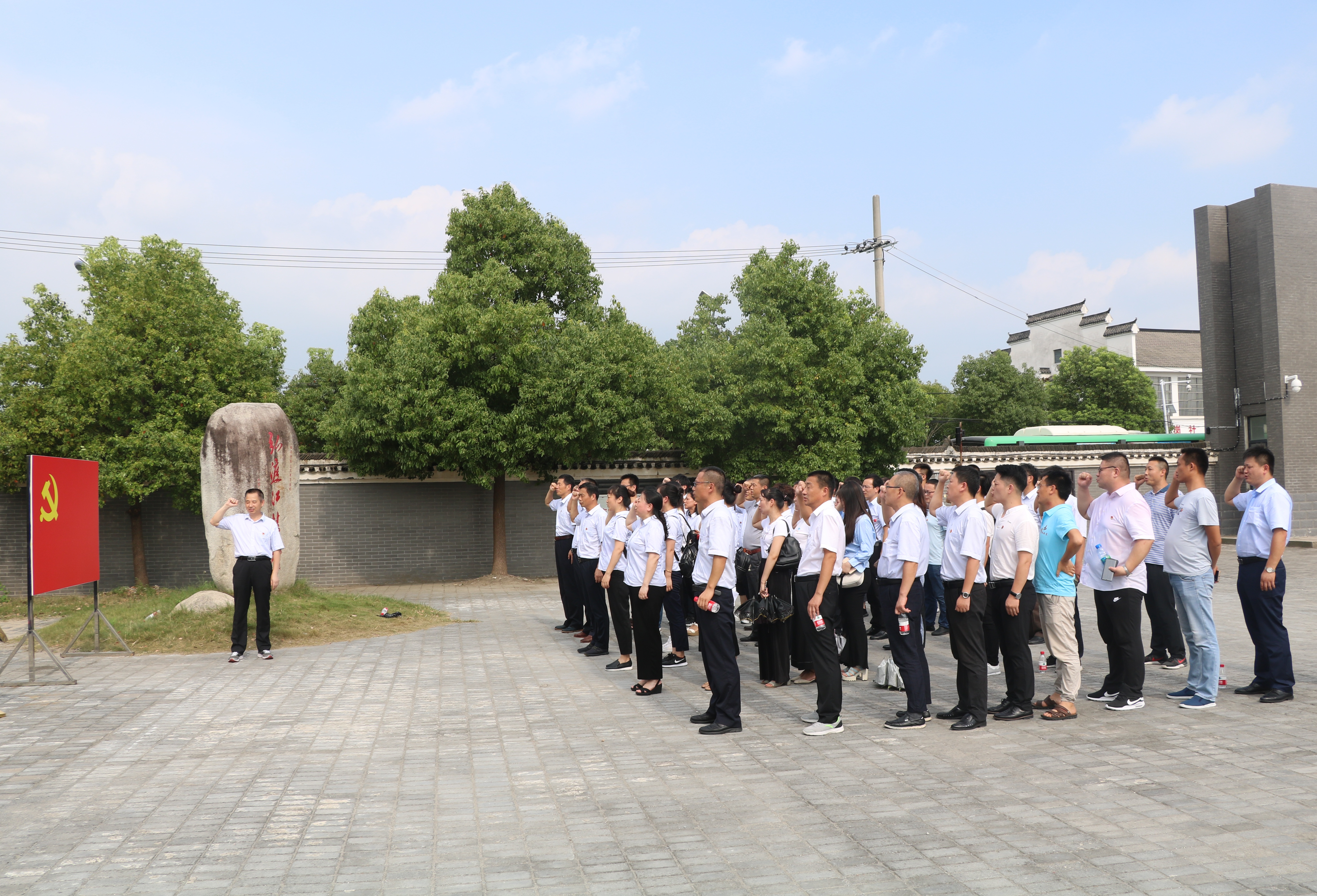 大家首先觀看了關于渡江戰役總前委舊址紀念館的紀錄片。隨后黨委書記、董事長胡六中帶領全體黨員在黨旗面前重溫入黨誓詞。