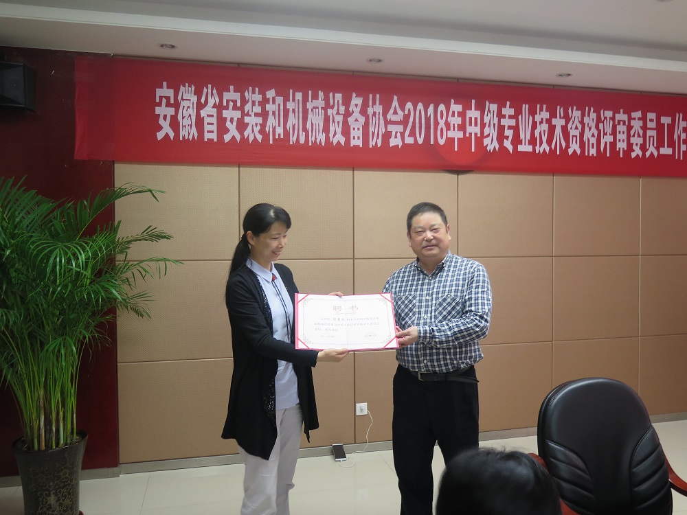 為深入學習了解職稱評審相關政策,進一步提高評委業務素質和職稱評審質量,協會按照評審要求,經過前期精心準備召開了本次會議。首先李會長宣讀了省人社廳《關于同意成立機電安裝和機械設備中級專業技術資格評審委員會的函》(皖人社函〔2017〕486號),王會長依次向評委們頒發《中級專業技術資格評審委員會》委員聘書。秘書長杜慶梅宣讀省人社廳關于印發《安徽省職稱評審委員會組織管理辦法》的通知(皖人社發〔2018〕3號),現場組織大家學習相關規定。