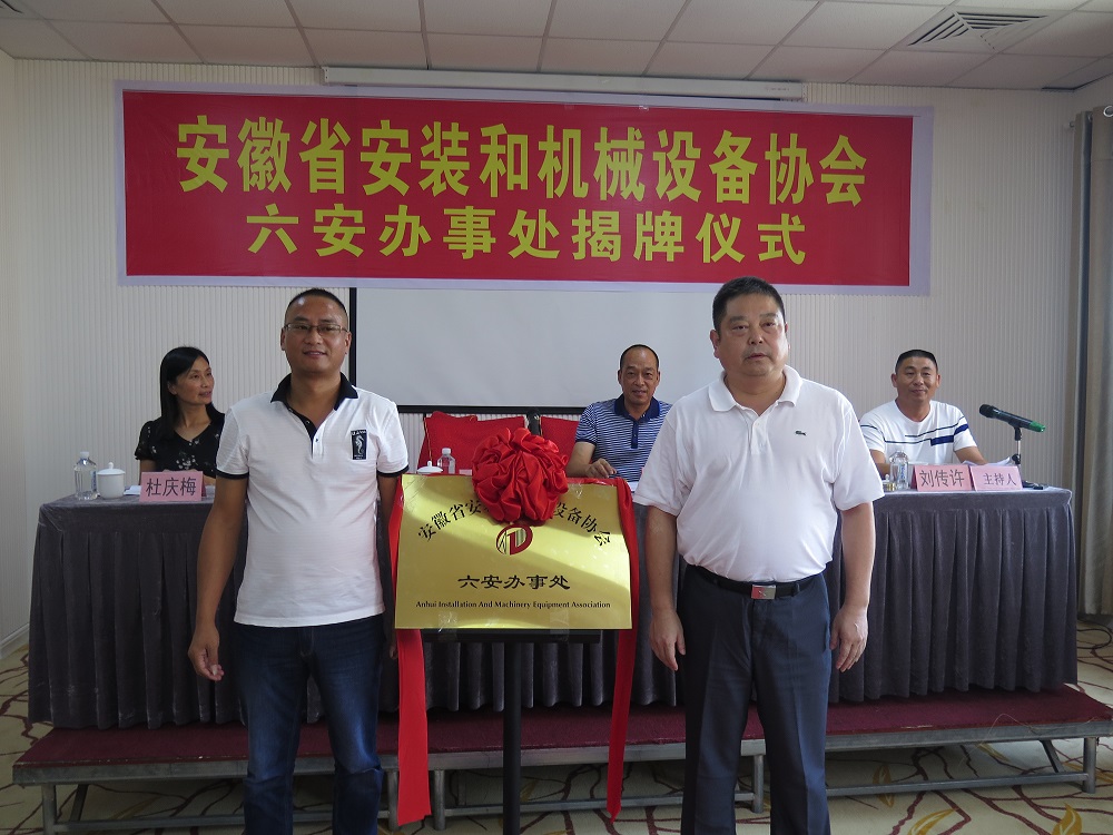 2018年9月5日,協會會長王軍邦、副會長李鵬飛、秘書長杜慶梅等一行參加了安徽省安裝和機械設備協會六安辦事處揭牌儀式暨交流會議,標志著六安辦事處正式成立。這是安徽省安裝和機械設備協會在全省范圍內成立的第一家辦事處。