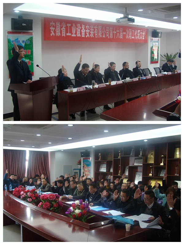 大會認真聽取并審議通過了公司董事長、總經理王軍邦同志所作的《解放思想、激發活力、夯實基礎、搶抓機遇,以改革創新精神全力推進企業發展新局面》的工作報告、《公司二○一四年度財務決算及二○一五年度財務預算的報告》、《二○一四年公司業務招待費使用的報告》、《分公司經營業績考核暫行辦法》、《公司機關考勤制度》等5個文件;表彰了2014年度公司先進集體和先進個人,獎勵了獲得集團及以上創優、科技進步等方面榮譽的先進集體;簽訂了分公司2015年度經營業績責任書和基層黨支部工作目標管理責任書。會上,職工代表還對公司領導班子成員進行了民主考核測評。