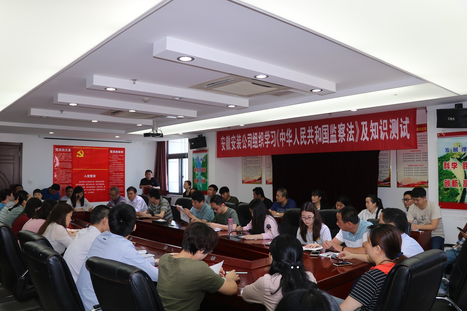 隨后,為了檢驗學習效果,當場進行了《監察法》知識測試,考試過程中,全體參考人員嚴守考場紀律,態度端正、認真答卷,考場秩序井然有序,確保了考試的公正嚴肅性。此次測試題型設置上為單選題和簡答題,卷面滿分100分,通過此次知識測試,使機關全體干部職工對自身所擔負的責任和應盡的義務有了更加全面的認識,增強了依法監督意識,達到了以考促考的目的,為推動國有企業黨風廉政建設和反腐敗工作營造良好氛圍。