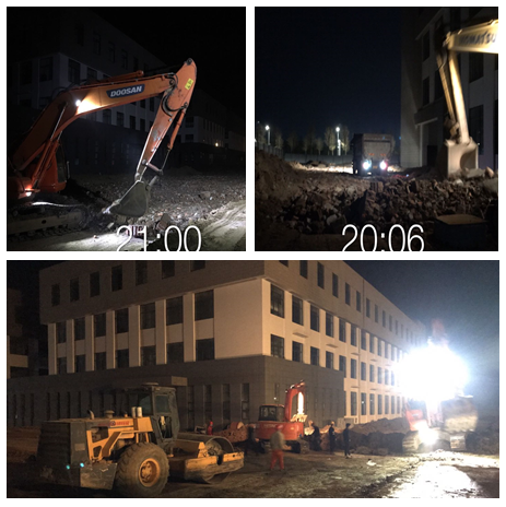 夜幕之下,照明燈前,界首出口企業培育基地一期工程現場,挖掘機、運輸車、壓路機仍在高效運轉,管理人員仍在靠前指揮。該項目竣工日期為5月30日,為把失去的工期“搶回來”,項目部自3月2日復工后,工作強度明顯增大加重,但全體參建人員不畏苦、不懼難,自我加壓、逆勢而上,倒排施工計劃、優化作業環節、調配各方力量,并聯推進、協同作戰,強化管控、嚴防漏洞。當遇到重要工序施工時,即采取白天黑夜兩班倒連續作業模式,以全力保障工期進度和質量;為掀起搶工大干熱潮,確保工期目標按時完成,分公司在項目部組織開展了“大干45天”勞動競賽。無數個日夜堅守,苦干實干,在復工后的近兩個月里,現場雨污水管網施工已全部完成,道路施工水穩層也已結束。