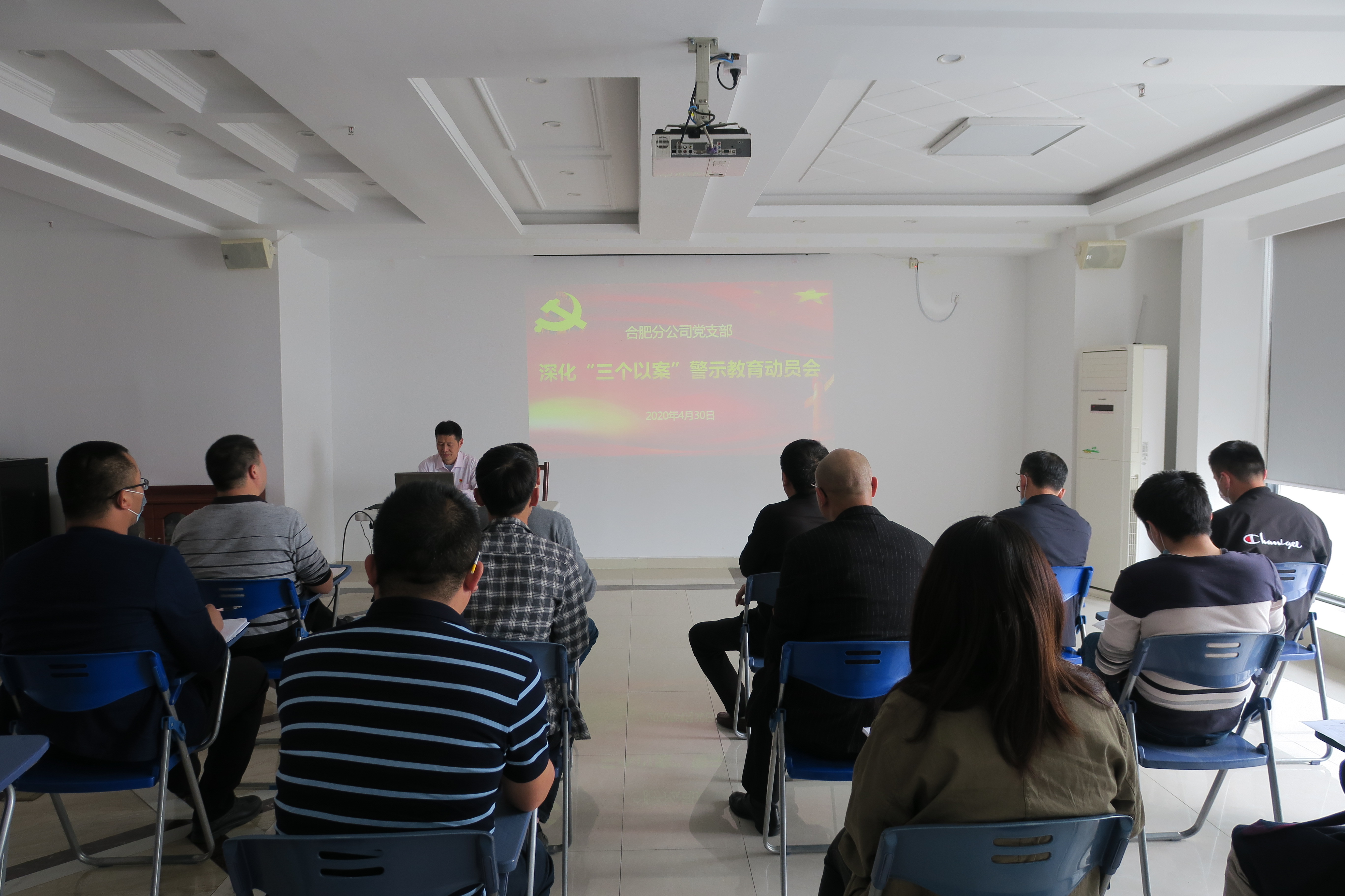 4月30日下午,合肥分公司黨支部組織召開深化“三個以案”警示教育動員會。黨支部書記胡迎東主持會議,分公司領(lǐng)導(dǎo)班子、各部門主要負(fù)責(zé)人和機(jī)關(guān)全體黨員參會,項(xiàng)目黨員以釘釘視頻會議形式同步參加會議。