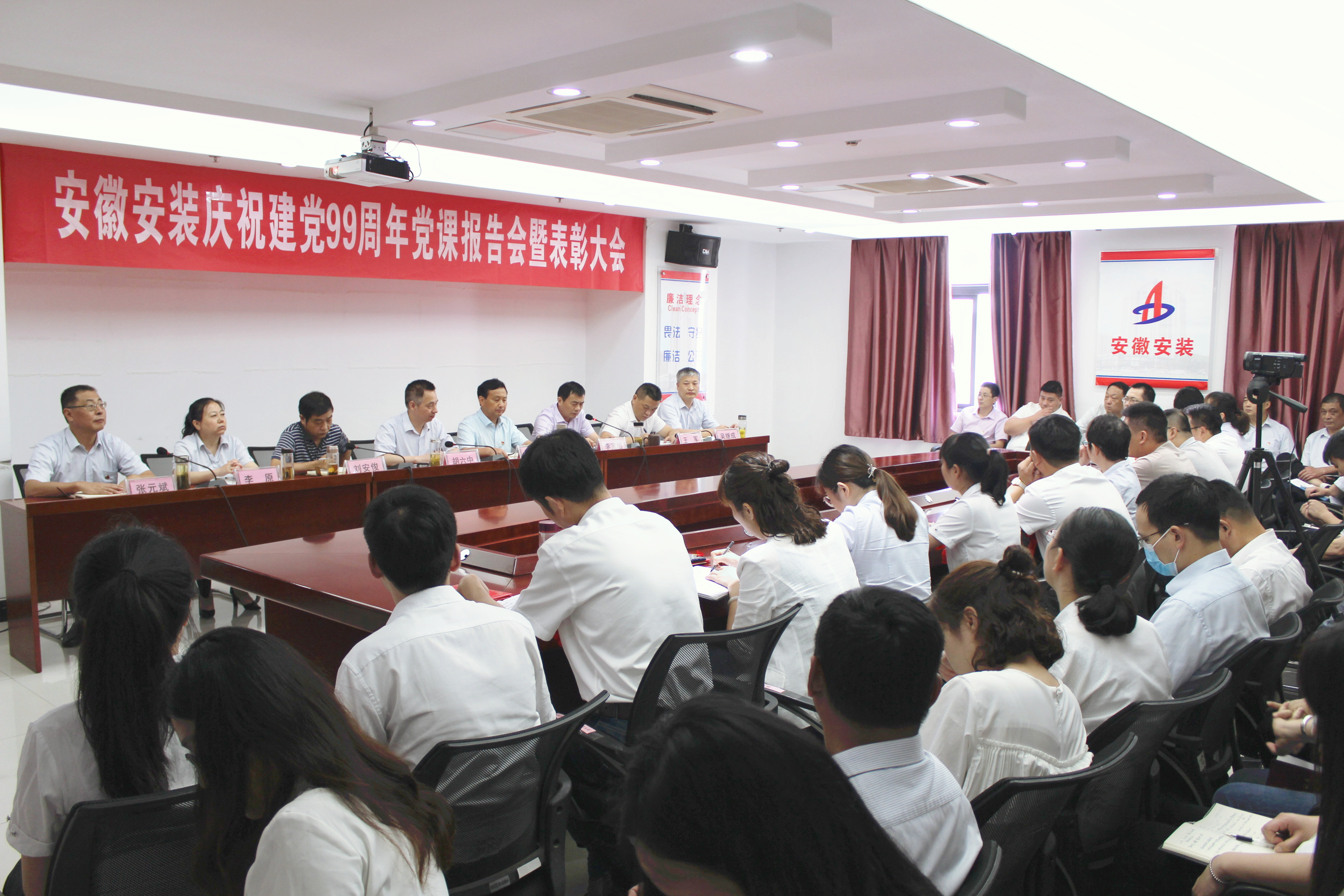 為慶祝中國共產黨成立99周年,激勵廣大黨員干部堅定理想信念,進一步提高黨員隊伍的凝聚力、戰斗力、創造力,6月30日,安徽安裝公司召開慶祝建黨99周年黨課報告會暨表彰大會。公司領導班子成員出席會議,紀委書記、工會主席李寬旭主持會議。