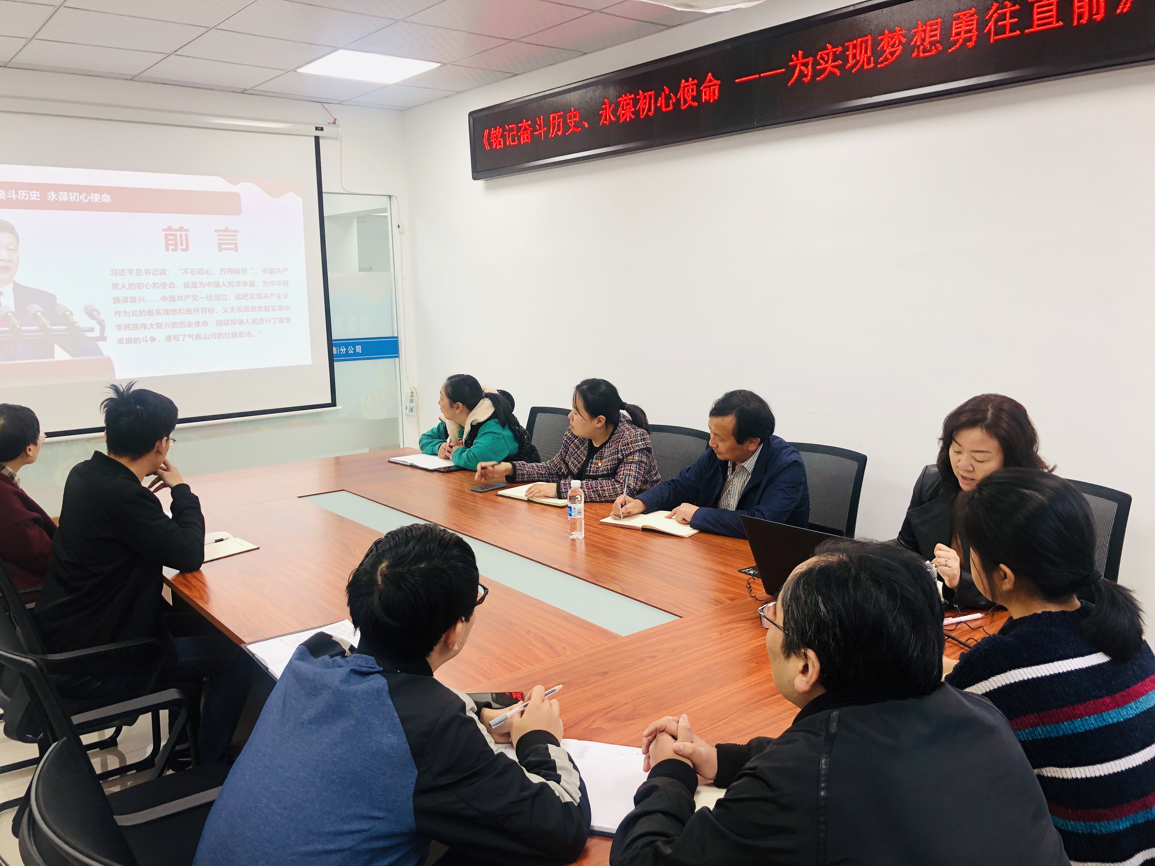 11月13日,安慶分公司黨支部書記劉紅艷赴房建(裝飾)分公司作題為《銘記奮斗歷史、永葆初心使命 —為實現夢想勇往直前》專題黨課報告,分公司黨支部在肥黨員及職工參加,副總經理高飛以普通黨員身份參加。