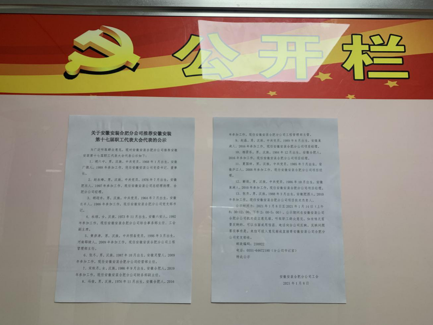 近日,安徽安裝公司工會(huì)組織開(kāi)展公司第十七屆職工代表大會(huì)職工代表?yè)Q屆選舉工作。