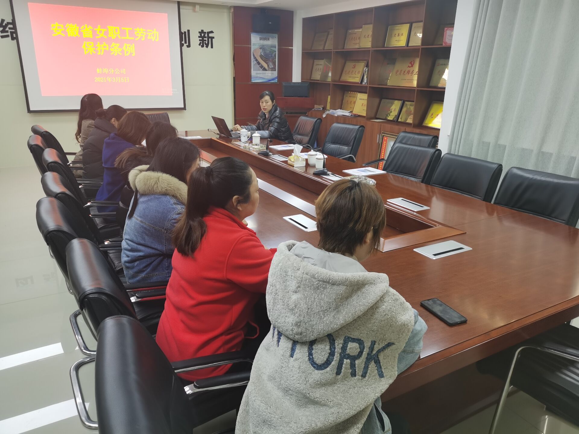 陽(yáng)春三月,百草初醒,萬(wàn)木崢嶸,值此第“111”個(gè)三八國(guó)際勞動(dòng)?jì)D女節(jié)來(lái)臨之際,3月5日下午,蚌埠分公司工會(huì)開(kāi)展了《女職工勞動(dòng)保護(hù)特別規(guī)定》知識(shí)講座活動(dòng)。講座由分公司黨支部書(shū)記程茂麗組織,分公司全體女職工聆聽(tīng)講座。