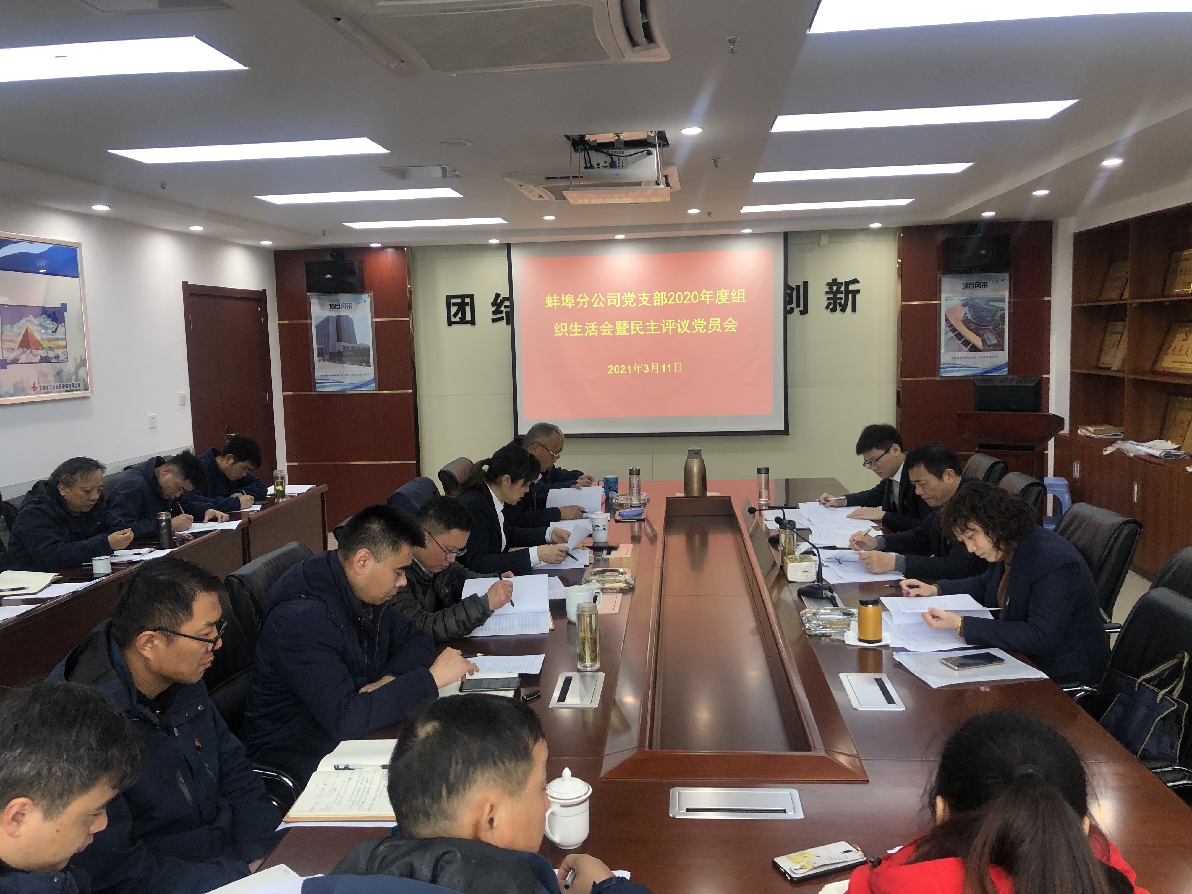根據(jù)公司黨委工作部署,3月11日上午,蚌埠分公司黨支部召開2020年度專題組織生活會暨民主評議黨員大會。公司紀委書記、工會主席李寬旭,人力資源部經理、機關第三黨支部書記王敏,公司黨委辦公室主管楊駿輝同志到會指導。會議由黨支部書記程茂麗主持,分公司全體黨員參會。