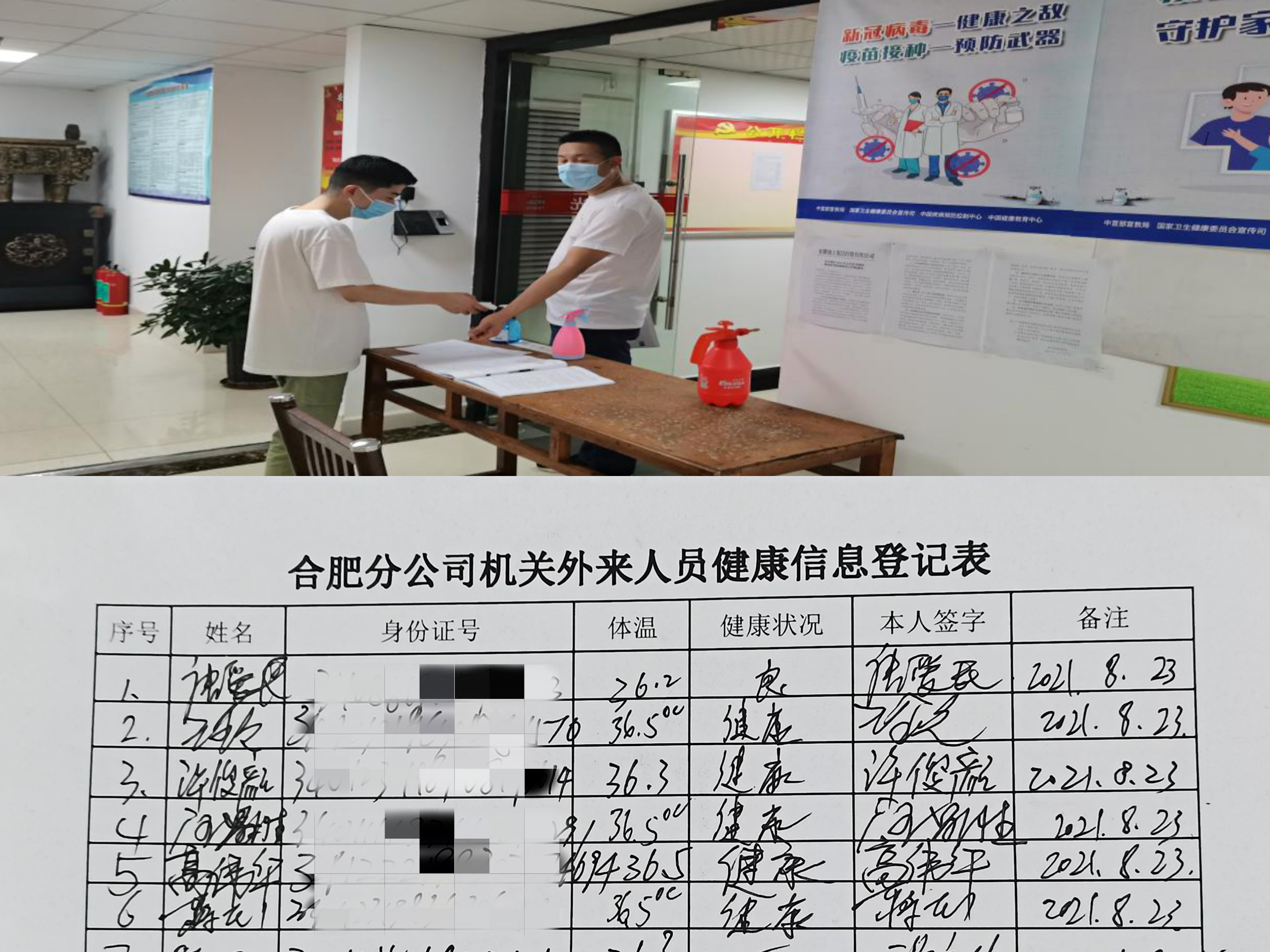 分公司機(jī)關(guān)每日體溫監(jiān)測并進(jìn)行外來人員信息登記表