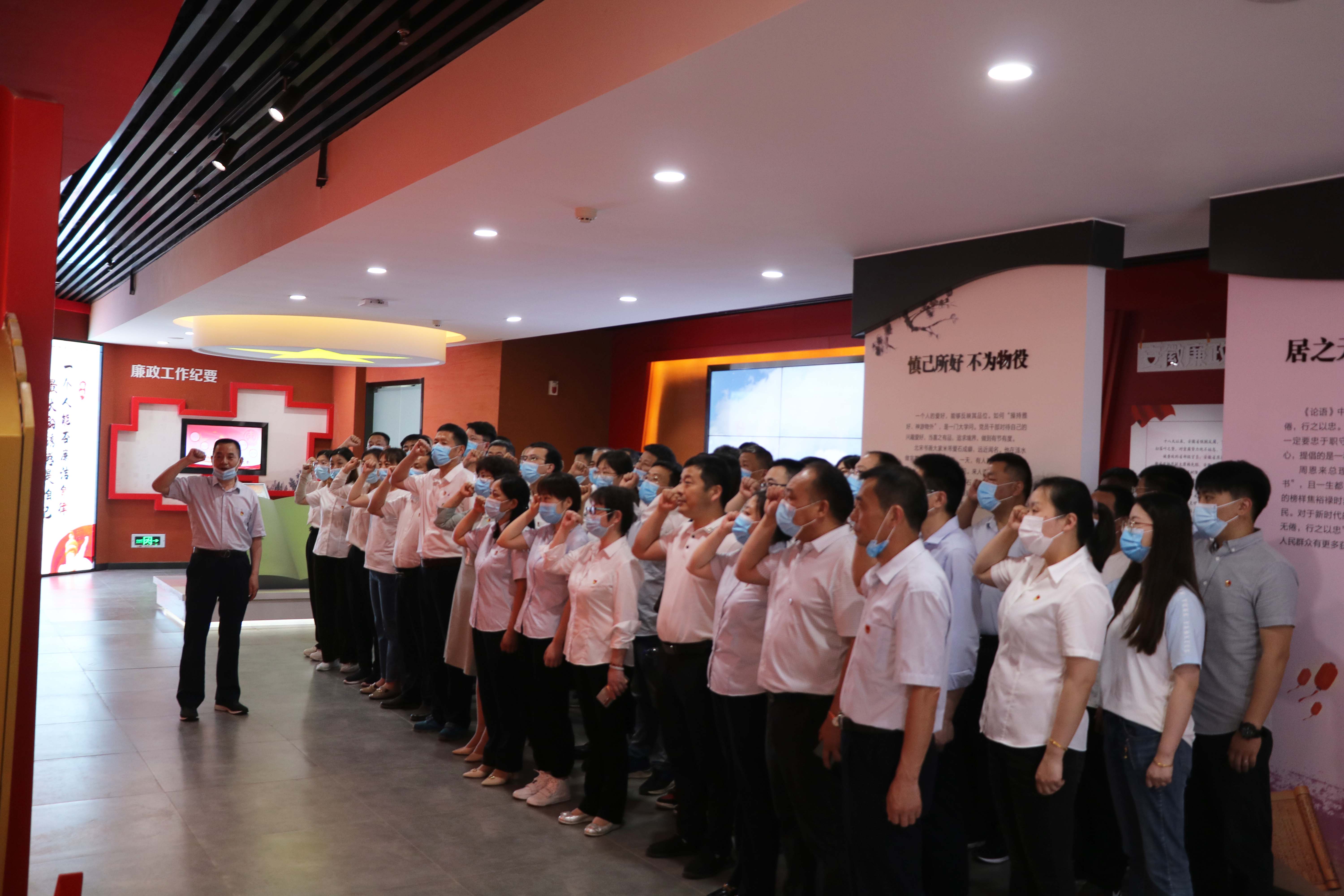 瑤海區人民法院廉政文化館共兩層,內容分為“廉政文化館”“法治文化教育館”和“院史陳列館”三個篇章,綜合運用展板、實物、雕塑、場景、聲光電等多種形式,將歷史與現實緊密結合,多角度、大縱深地闡釋廉潔文化這一主題。在一樓警示教育報告廳里,在講解員的解說下,大家依次參觀了鑒史問廉、廉政故事、貪腐之害、時光隧道、廉潔豐碑、廉政成果、廉政文章、廉政寄語八大板塊,參觀過程中大家仔細聆聽,細細研讀,通過展廳內文字、實物、整合的典型圖文資料、影音影像等,深入學習了廉政文化、中國共產黨反腐倡廉歷史、安徽省反腐倡廉實踐等內容,大家在視覺、聽覺上接受了一堂全面生動的反腐倡廉警示教育課。活動期間,公司黨委書記、董事長胡六中帶領在場全體黨員集體重溫入黨誓詞。