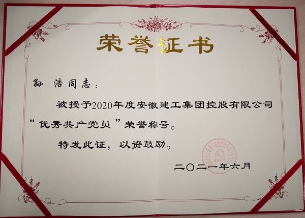他就是孫浩,現(xiàn)任蚌埠康寧藥用玻璃項目副經(jīng)理。他以自己的實際行動詮釋著一個共產(chǎn)黨員的初心和擔當,以自己的工作成績贏得了公司領導和同事們的信任與肯定。他忠愛于自己所從事的工作,堅定著自己的理想信念,時刻以黨員的標準嚴格要求自己,奮勇當先、兢兢業(yè)業(yè),用堅持不懈的努力與認真負責的精神,在施工管理崗位中,展現(xiàn)出一名共產(chǎn)黨員的本色,榮獲2020年度“建工集團年度優(yōu)秀共產(chǎn)黨員”稱號。