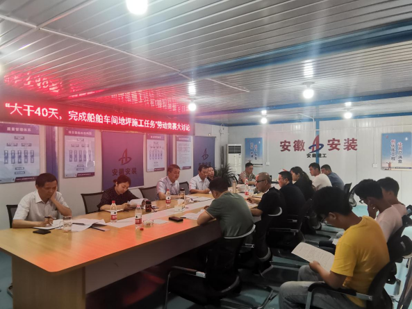 9月2日上午,安徽安裝蚌埠臨港智能制造產(chǎn)業(yè)園二期工程“大干40天,確保完成船舶車間地坪施工任務(wù)”勞動(dòng)競(jìng)賽主題大討論在項(xiàng)目部舉行。公司副總經(jīng)理高飛、趙伯平,紀(jì)委書記、工會(huì)主席李楊,工會(huì)副主席王敏,公司勞動(dòng)競(jìng)賽委員會(huì)相關(guān)職能部門負(fù)責(zé)人、蚌埠分公司班子成員、項(xiàng)目部員工共30余人參會(huì),會(huì)議由李楊主持。