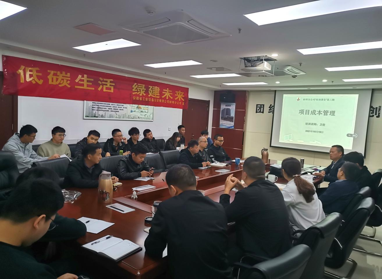 為有效提升分公司項目一線員工管理水平,加強項目管理及成本管理意識,10月19日到10月21日,蚌埠分公司邀請公司工程管理部經理龍海建、成本合約部副經理衛俊到分公司開展相關業務知識培訓。蚌埠分公司領導班子成員、工程管理部、成本合約部及各在建項目經理、技術負責人和項目員工計28余人參加此次培訓活動。