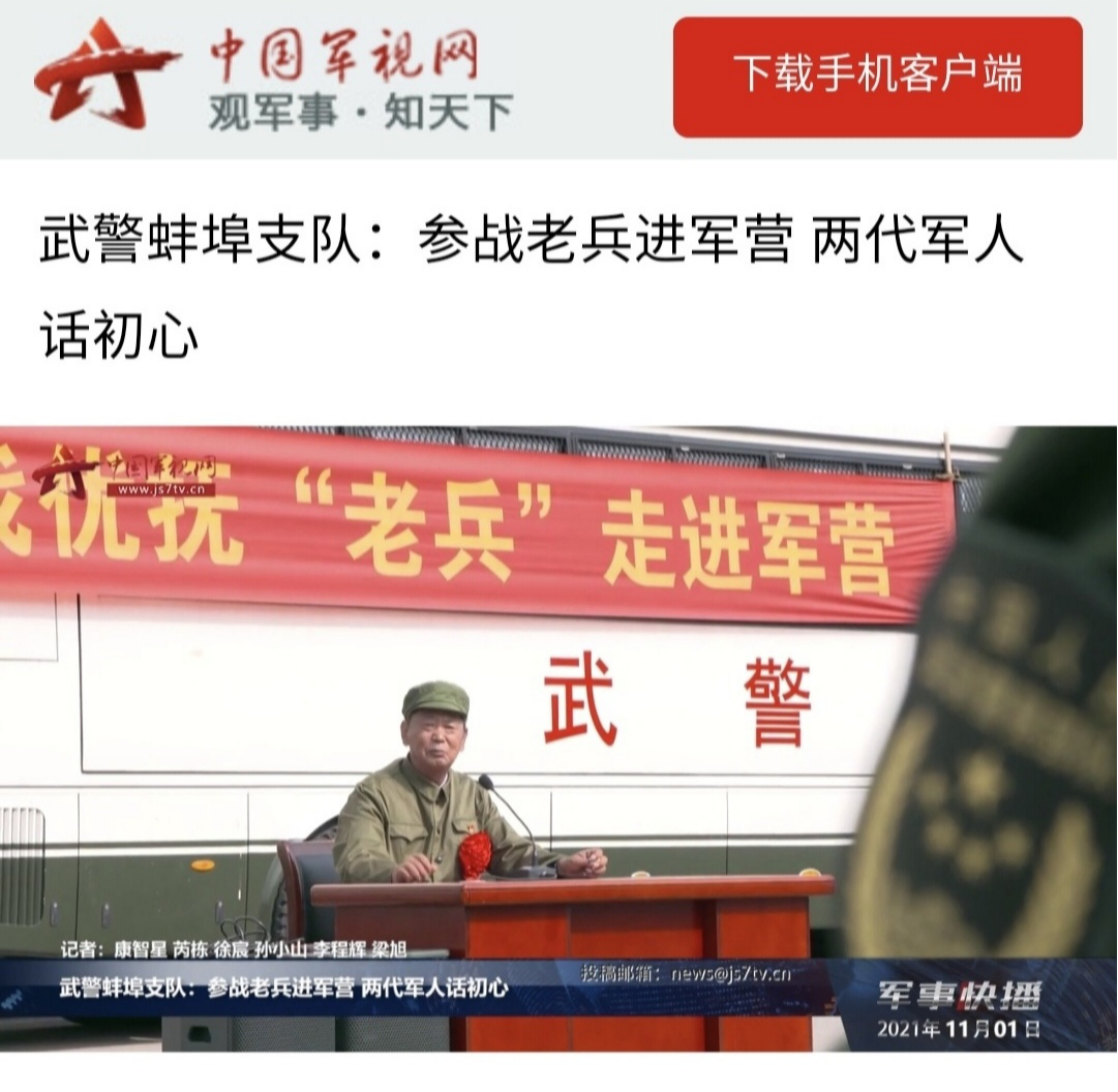 近日,《中國軍視網(wǎng)》《人民武警報》專題報道安徽安裝蚌埠分公司年飛同志作為參戰(zhàn)退伍老兵講授專題黨課。