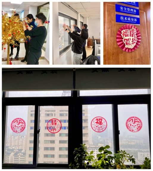 金牛送舊千家樂,玉虎迎新萬戶歡,春節(jié)將至,為豐富職工文化生活,營造歡樂、祥和、平安、喜慶、和諧的節(jié)日氣氛,合肥分公司工會提前準備了喜慶的新年裝飾、對聯(lián)、窗花等節(jié)慶用品,組織團員青年、機關(guān)員工將辦公室裝扮一新,并將濃濃年味帶到了各個項目部現(xiàn)場。