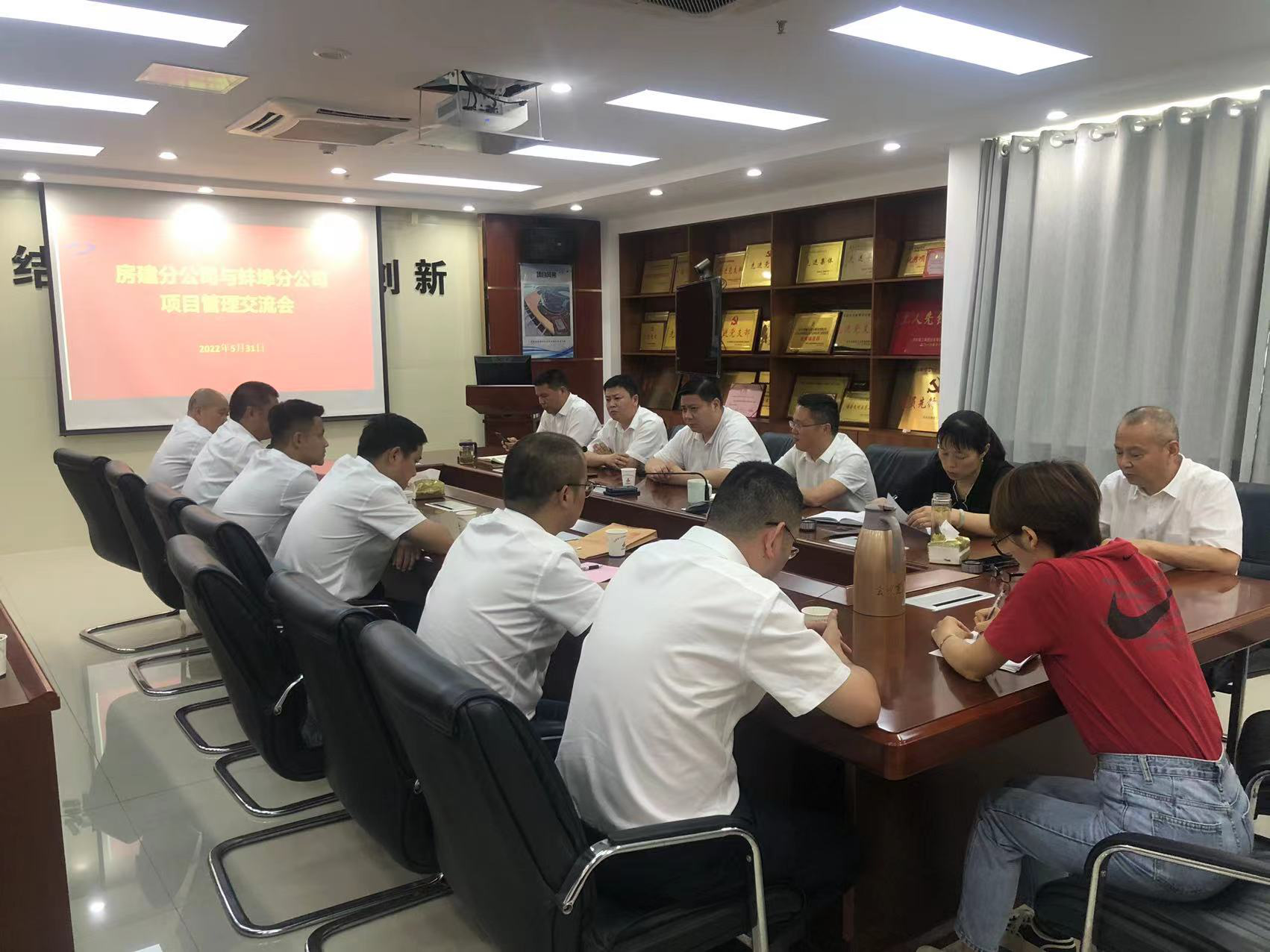 為落實(shí)公司“項(xiàng)目管理年”活動(dòng)要求,進(jìn)一步提升工程項(xiàng)目管理水平,5月31日,房建(裝飾)分公司領(lǐng)導(dǎo)班子帶隊(duì)赴蚌埠分公司開展項(xiàng)目管理經(jīng)驗(yàn)交流。房建(裝飾)分公司、蚌埠分公司領(lǐng)導(dǎo)班子,項(xiàng)目經(jīng)理代表、工程管理部門有關(guān)人員代表參加了交流會(huì)。
