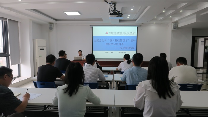 根據合肥分公司“項目管理年”活動學習培訓計劃安排,9月20日下午,分公司組織開展了第五期“項目管理年”活動制度學習會,由分公司安全管理部負責人孔微明講授安全管理相關知識。分公司領導班子成員、機關員工以及項目部安全員參會。