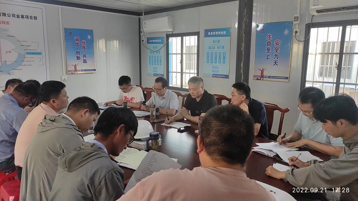 9月21日下午,公司總工程師吳繼成一行赴蚌埠分公司霍邱縣金巢礦業(yè)有限責(zé)任公司選鐵選云母技改工程項(xiàng)目開(kāi)展三季度聯(lián)合檢查。公司總工辦、工程管理部、安全管理部、成本合約部等部門(mén)負(fù)責(zé)人聯(lián)合檢查,蚌埠分公司黨支部書(shū)記、副經(jīng)理王偉,副經(jīng)理張斌、郭洋及項(xiàng)目部全體職工參加。