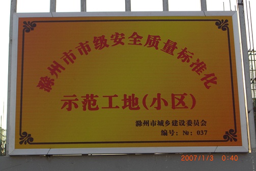 2010年12月31日,滁州分公司承建的皖投水岸星城一期三標段工程成功創(chuàng)建滁州市安全質(zhì)量標準化示范工地。