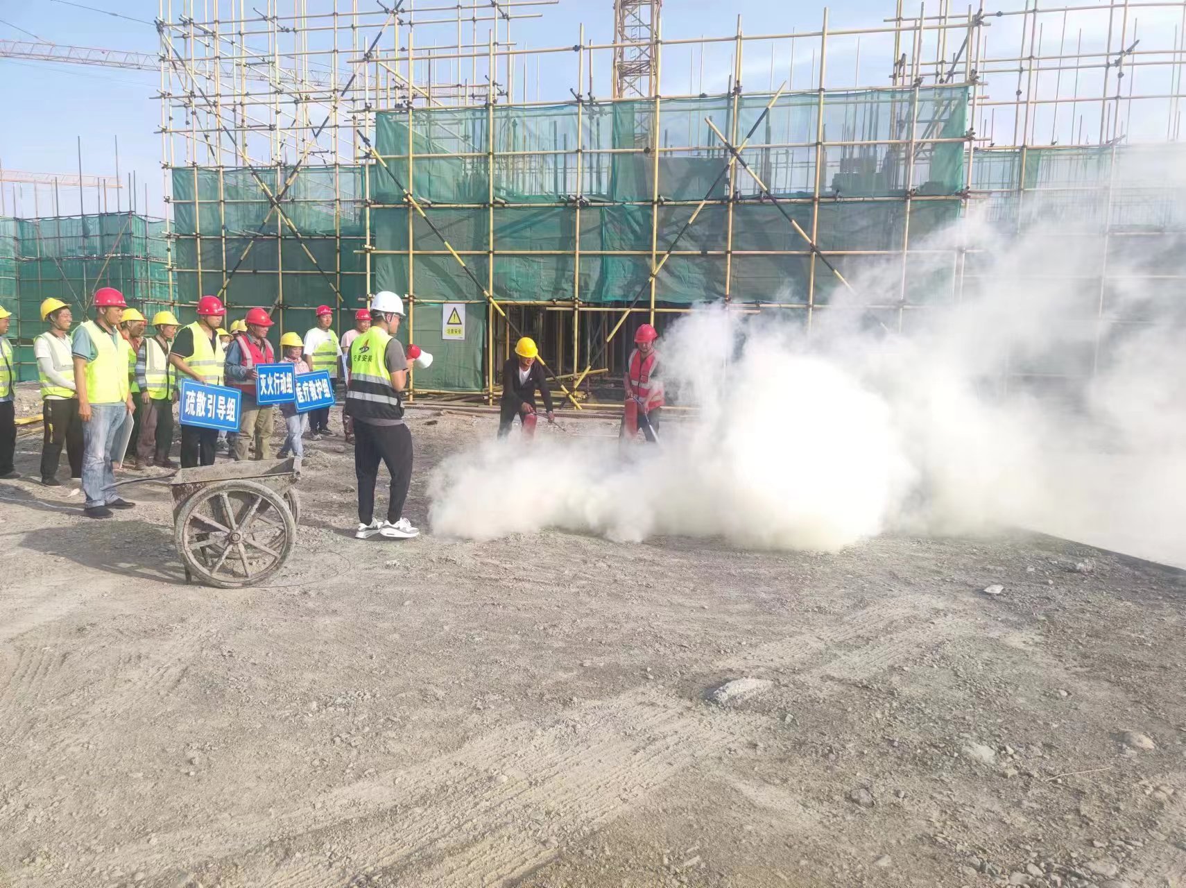 為更好的提高項目現場人員對突發情況的應急處理能力,檢驗應急預案的可行性,6月20日,建工安裝烏蘇市南苑新城小區住宅樓建設工程項目組織開展消防演練。