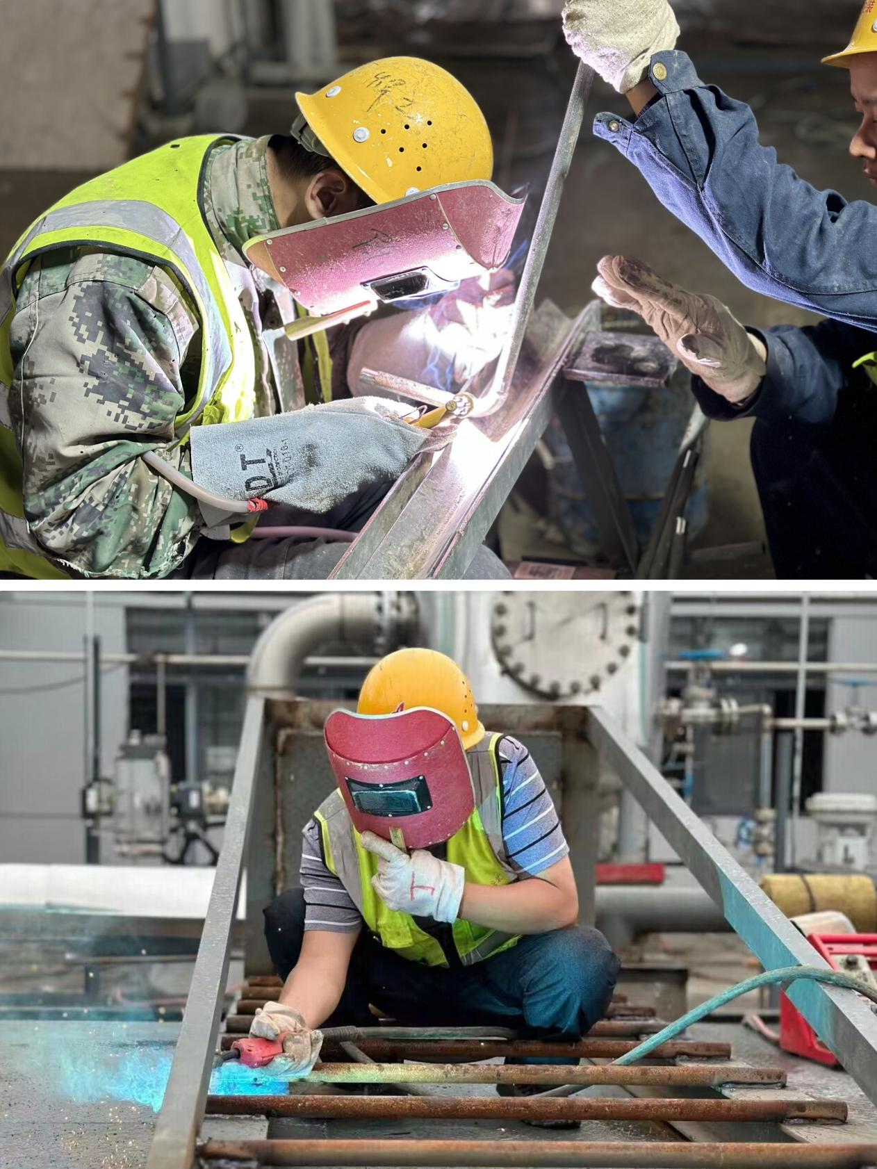 蕪湖普立思項目正在進(jìn)行現(xiàn)場鋼平臺和蒸汽支管焊接