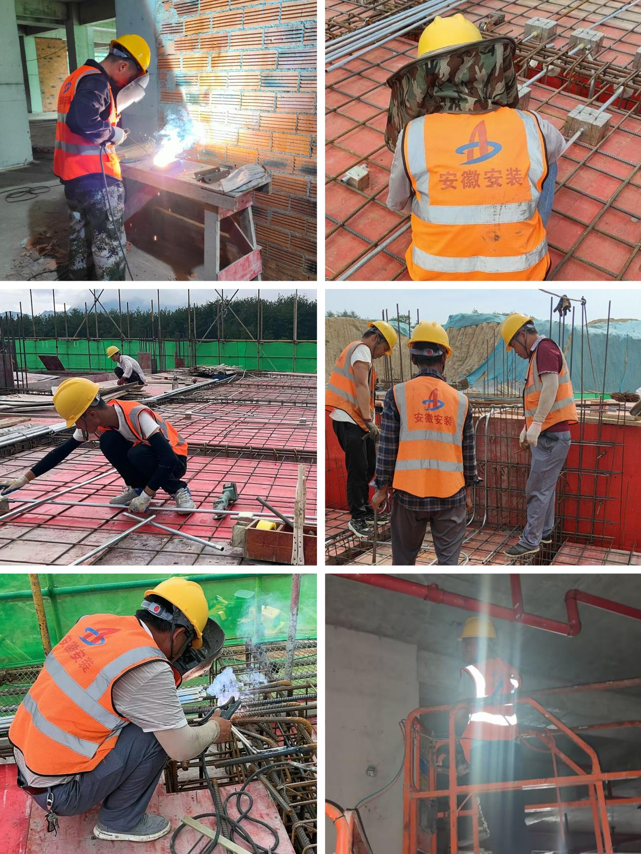 岳西中學(xué)項目現(xiàn)場正在進(jìn)行埋地排水管道、消防水平管道安裝、樓層板面線管預(yù)埋、防雷焊接