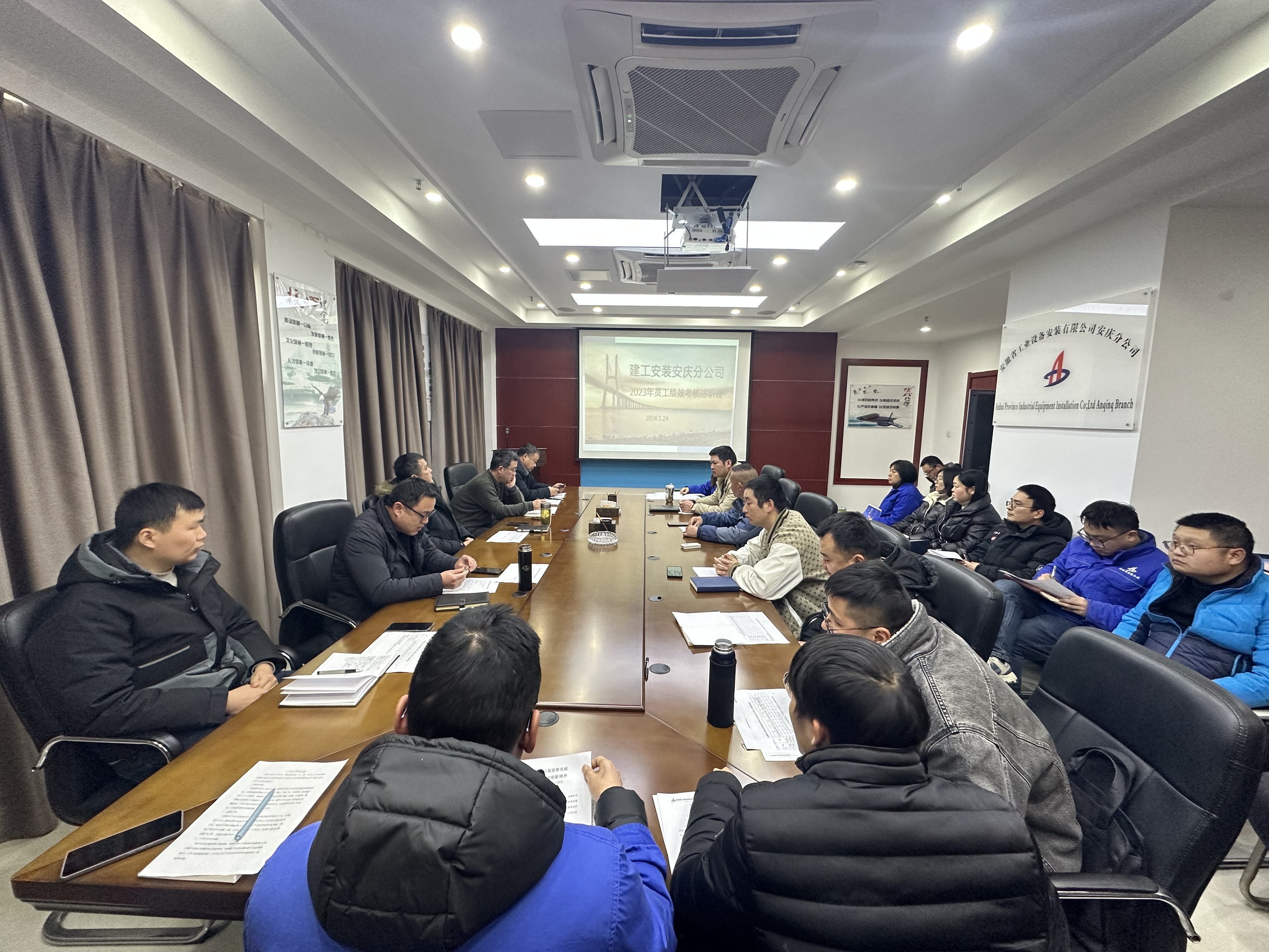為全面總結2023年工作,統一員工思想,激勵員工再接再厲,奮發有為。2024年1月25日,安慶分公司召開了2023年度員工績效考核述職大會,分公司領導班子、全體員工參加會議。