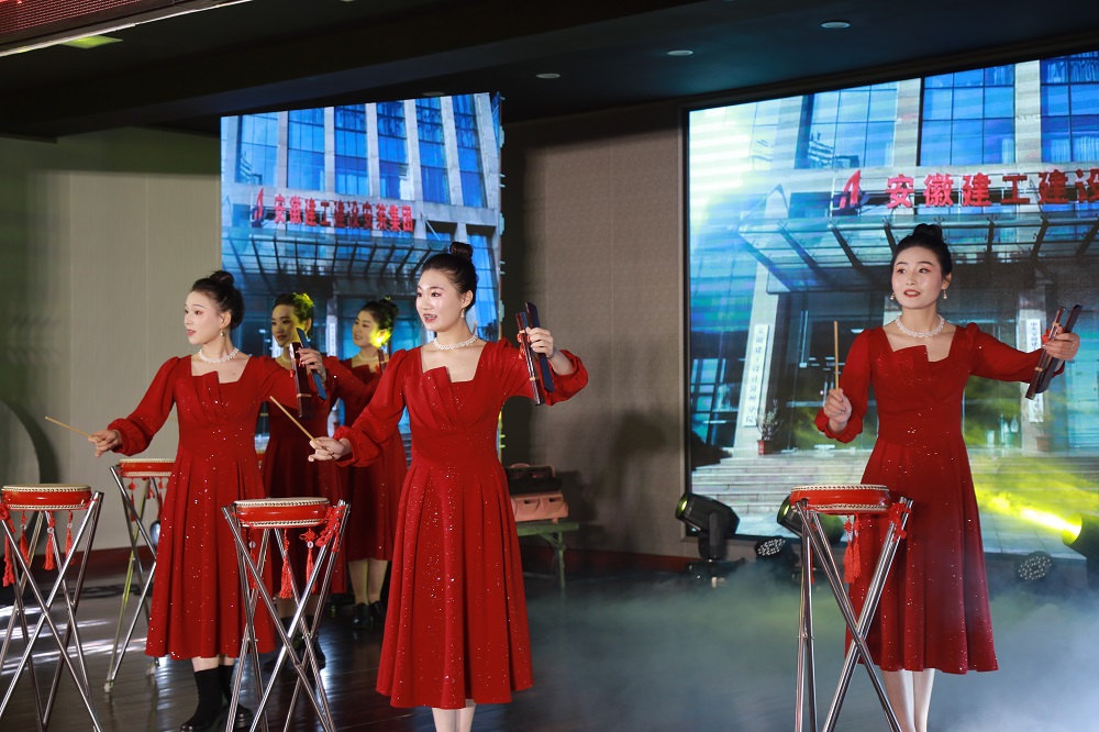 聯歡會一個個精彩的節目,博得大家的聲聲喝彩和陣陣掌聲,氣氛熱烈。在開場舞《龍騰盛世譜華章》中,聯歡會拉開序幕。新能源分公司《向光而行》展現了對未來發展的美好向往;安慶分公司《共創平安幸福年》以黃梅大鼓的形式講述安全工作的重要性;蚌埠分公司《水調歌頭》以獨唱、舞蹈及書法的形式送上祝福;公司機關的獨唱歌曲串燒《音樂學堂》帶領大家回憶童年耳熟能詳的歌曲;新疆烏蘇分公司的小伙子們帶來的舞蹈《麥西來甫》呈現了維吾爾族的民族風情;滁州分公司的詩朗誦《建工逐夢人奉獻譜“新篇”》講述了建工安裝人的辛勤與奉獻;合肥分公司的《滁州賦》為觀眾帶來優美的國風視覺享受;電梯分公司《舞動青春》散發著青春的活力與激情。最后,在共唱《相親相愛》中聯歡會落下帷幕。