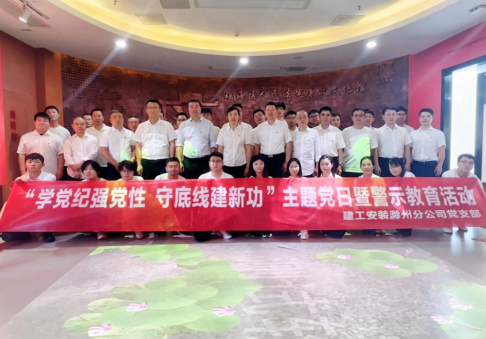 為扎實推進黨紀學習教育走深走實,進一步增強分公司黨員干部黨紀觀念和廉潔意識,培育分公司“清廉文化”干事創(chuàng)業(yè)氛圍,5月16日下午,建工安裝滁州分公司黨支部組織分公司領(lǐng)導班子成員、機關(guān)部門負責人、項目經(jīng)理、全體黨員和團員青年共40余人,赴瑤海區(qū)人民法院廉政文化館開展“學黨紀強黨性、守底線建新功”主題黨日暨警示教育活動。
