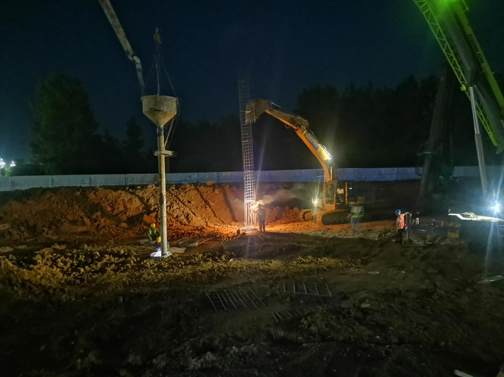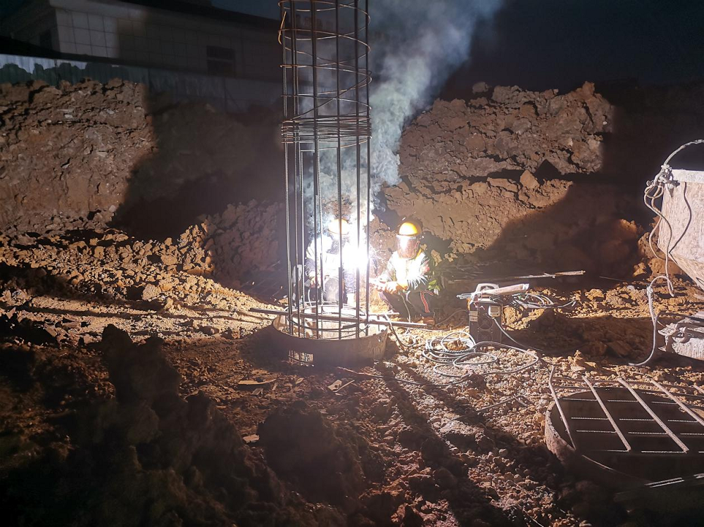 時間緊、任務重,為了全速推進施工進度,項目部堅持每天召開“碰頭會”,解決當天施工現(xiàn)場各種問題,不斷優(yōu)化施工組織方案,保障資源配置,把任務分解到天、具體到點,明確責任人,采取增大工作面、增加施工班組人員和機械等有效措施加快施工進度,加班加點施工,進入連續(xù)作戰(zhàn)狀態(tài),奏響了“白+黑”不停歇的沖刺戰(zhàn)歌。目前,在項目部的連續(xù)奮戰(zhàn)和努力下,六鋼大廈酒店基礎部位旋挖灌注樁澆筑已完成,11-7軸/a-d軸開挖完成。正處于樁基承臺施工階段。