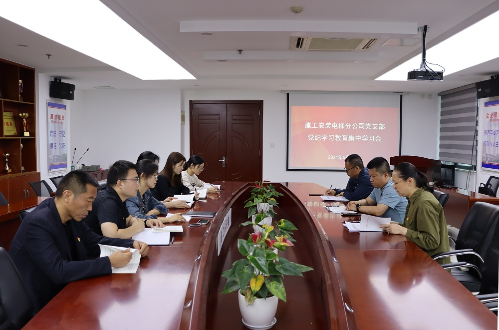 為進一步貫徹落實黨紀學習教育工作部署,強化黨員干部遵規守紀意識,5月27日上午,建工安裝電梯分公司黨支部開展了黨紀學習教育集中學習研討,分公司黨支部書記姚春靜主持會議,分公司全體黨員參會。