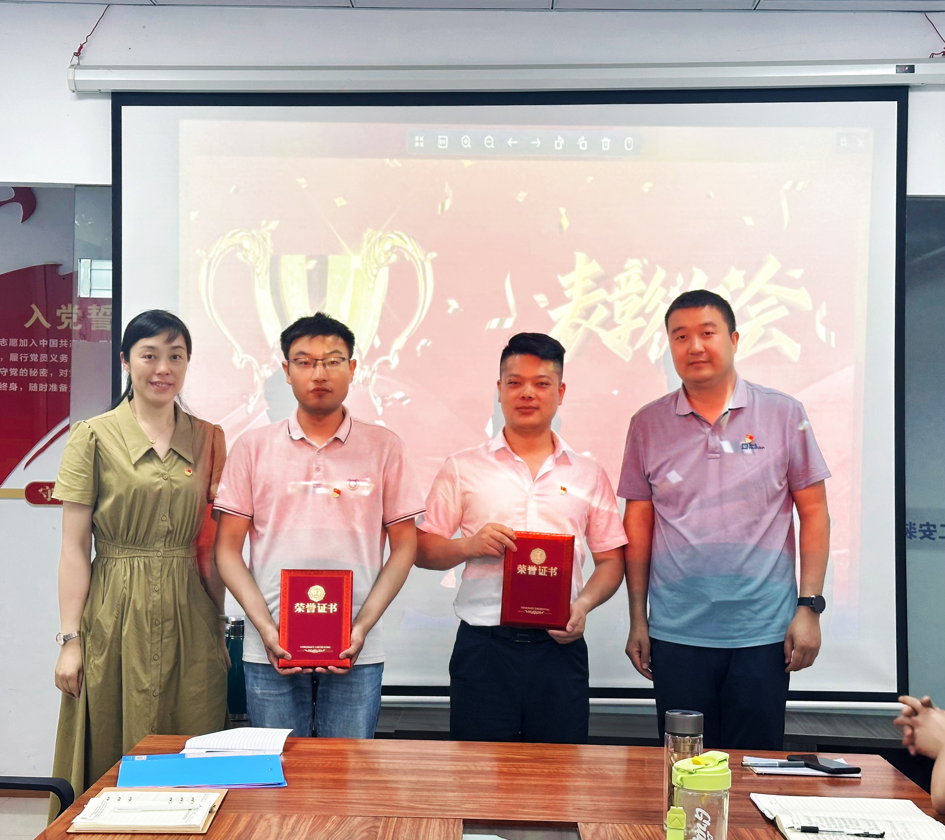 會上還對分公司黨支部評選出的兩位“優秀共產黨員”給予通報表彰。