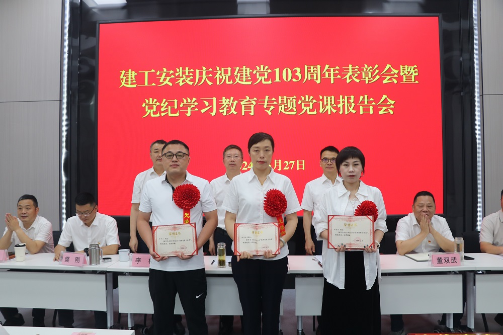 為慶祝中國共產黨成立103周年,扎實推進黨紀學習教育走深走實。6月27日上午,建工安裝黨委召開慶祝建黨103周年表彰會暨黨紀學習教育專題黨課報告會。公司領導班子成員出席會議,會議由公司黨委副書記、副總經理周正平主持。