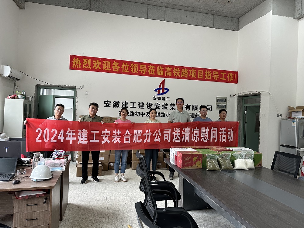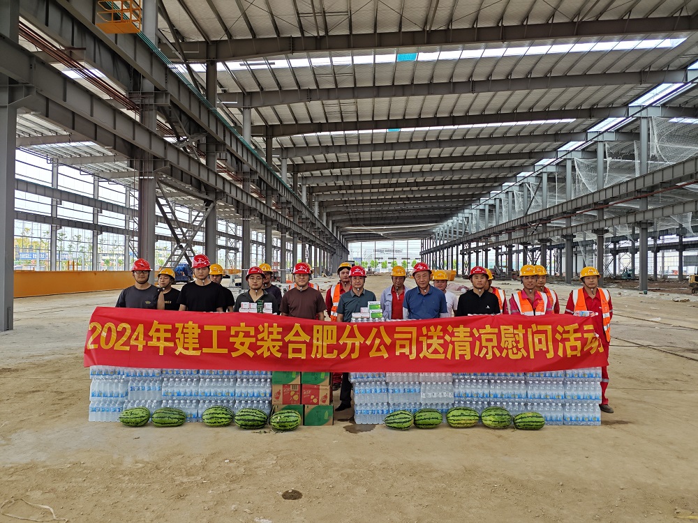 盛夏已至,驕陽似火,建工安裝合肥分公司省內外各項目現場掀起“沖刺三季度”大干熱潮。在合理組織施工的同時,分公司多措并舉,通過聯合屬地項目部開展送清涼等慰問活動,為建設者安全健康提供保障。