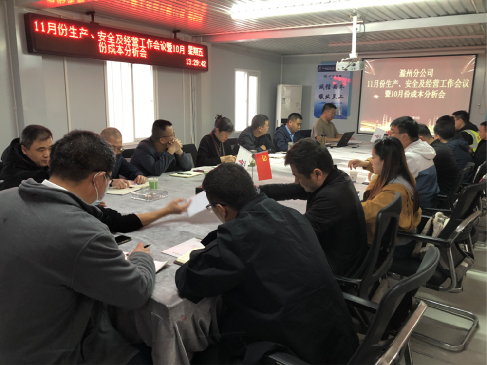 11月15日下午建工安裝滁州分公司在合肥新橋智能制造產業園一階段一標項目部召開11月份生產、安全及經營工作會暨10月份成本分析會。分公司領導班子成員、各項目經理、機關各部門負責人等參加會議,會議由分公司副經理張漢軍主持。