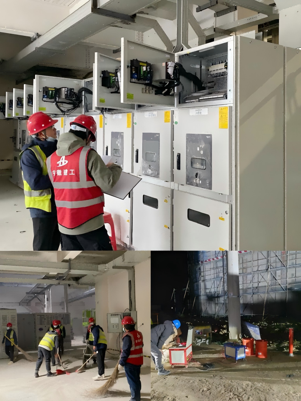 圖為新橋智能制造產業(yè)園機電安裝項目高壓柜二次接線核對、外線電纜耐壓試驗、配電房衛(wèi)生打掃