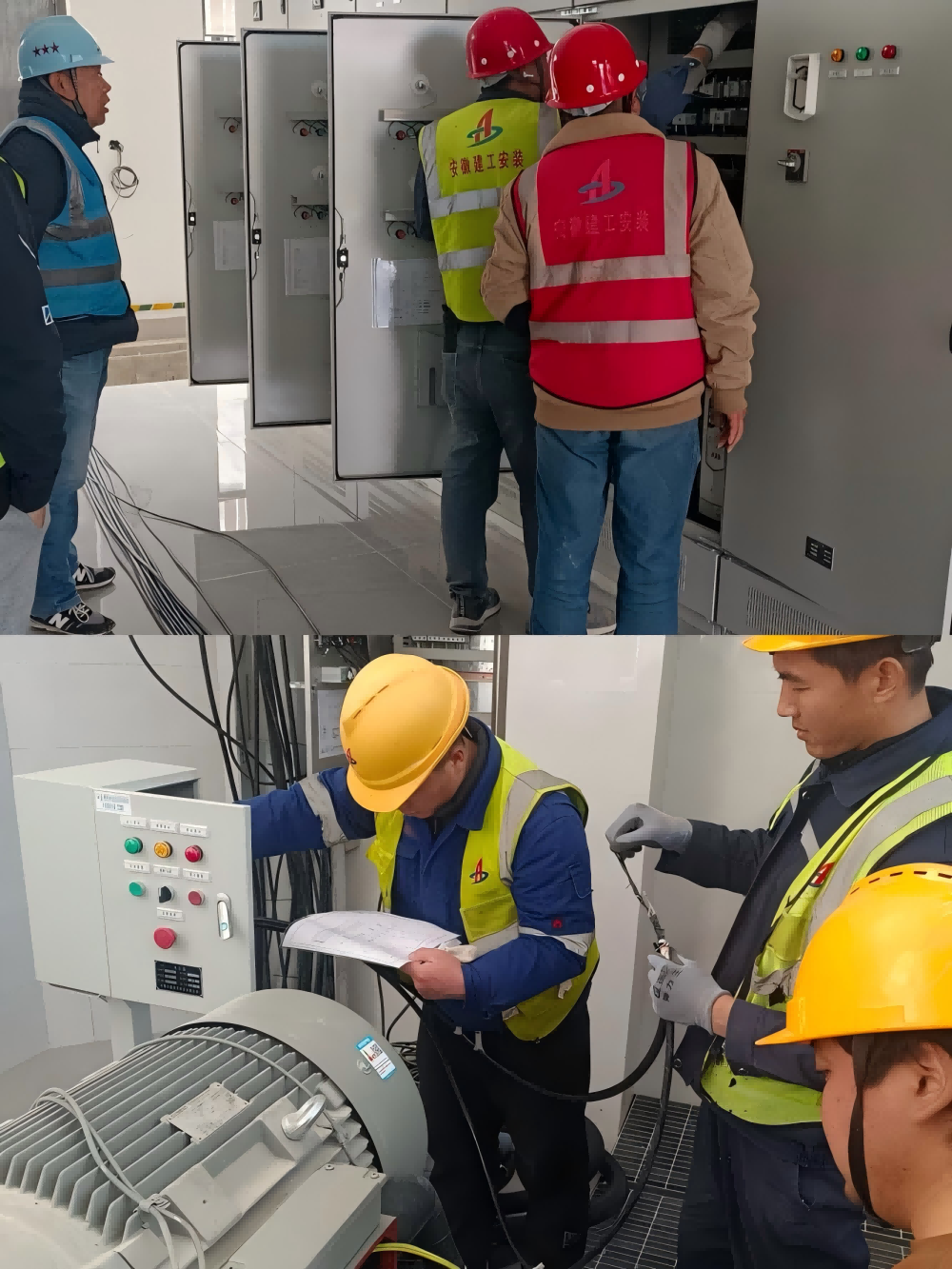 圖為合肥七水廠三期安裝工程項目敷設電纜、配電柜、設備接線
