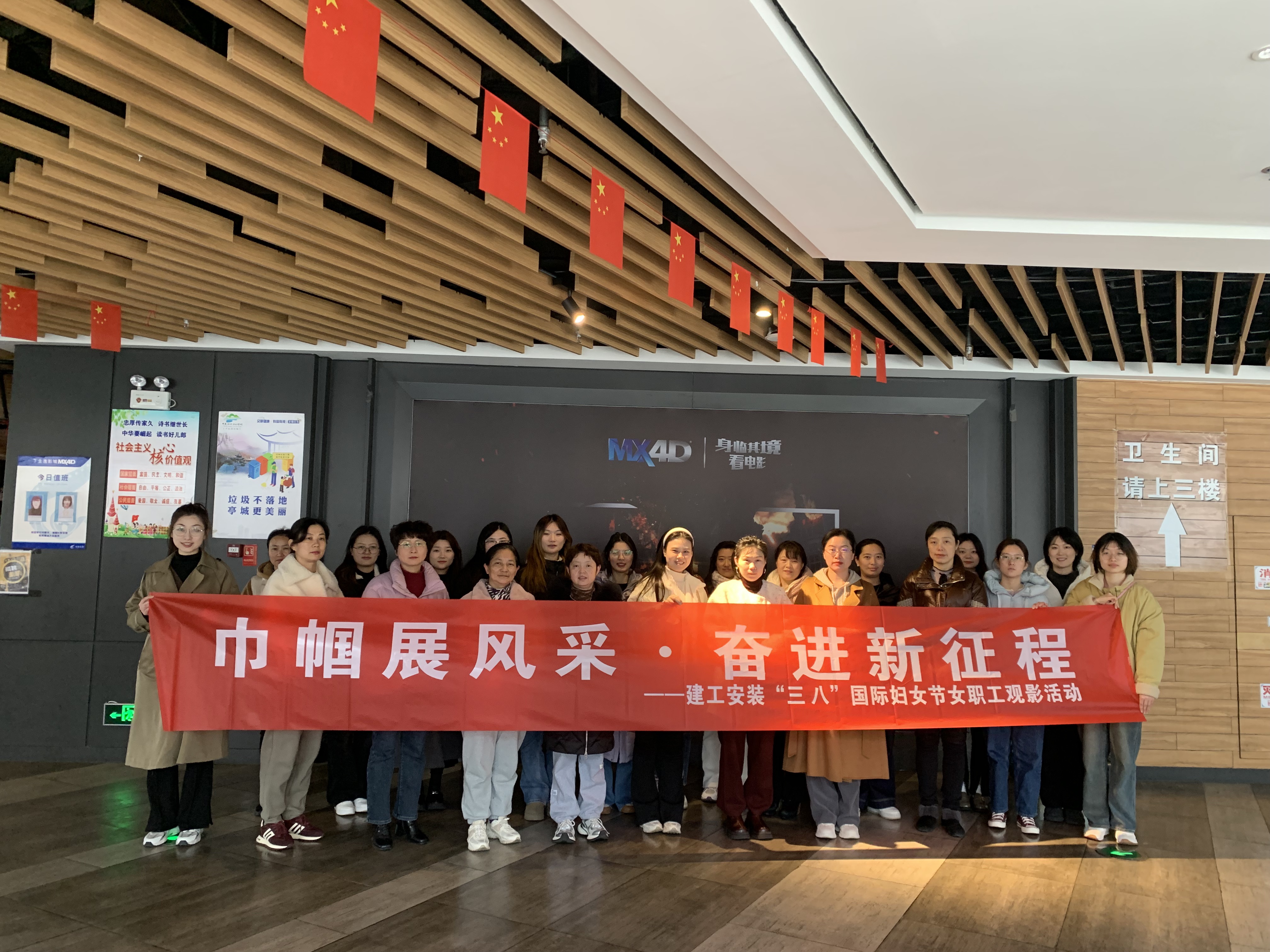 為豐富職工的業余文化生活,進一步關心關愛女職工,增強新時代女性奮發向上的凝聚力和向心力,在第115個國際勞動婦女節來臨之際,3月7日下午,建工安裝集團工會組織女職工開展“巾幗展風采·奮進新征程”觀影活動。
