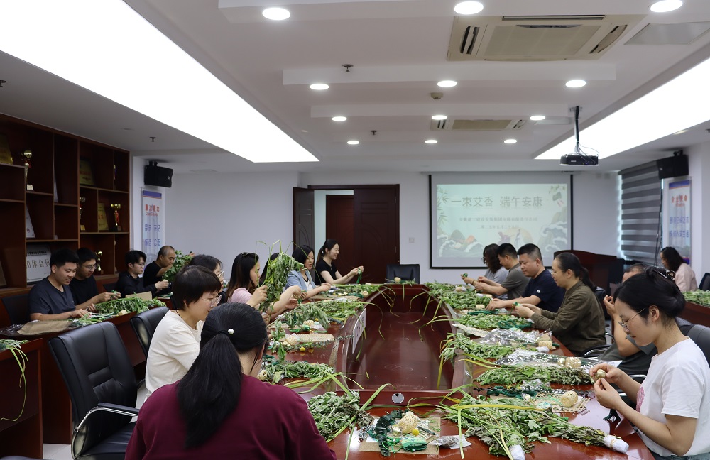 活動現場,大家首先學習了端午節的由來、習俗,以及艾草在端午文化中的特殊寓意,在手工包裝艾葉花束環節,大家熱情投入,小心翼翼地整理清香撲鼻的艾葉,用五彩絲線仔細纏繞,將一片片艾葉變成了精致的艾葉花束。有人別出心裁地將艾葉花束編織成愛心、花朵的形狀,有人則在絲線上系上小巧的鈴鐺,隨著動作發出清脆聲響。現場歡聲笑語不斷,大家互相展示作品,分享制作心得,平日里緊張忙碌的工作在此刻被輕松愉悅氛圍取代。