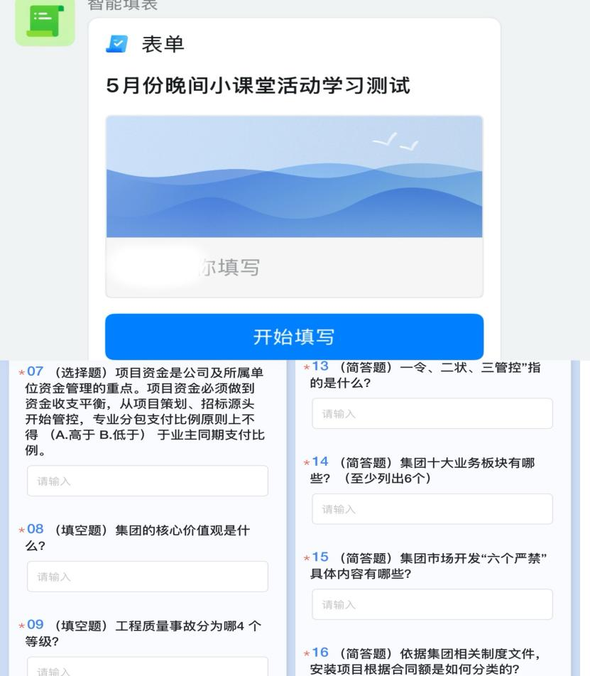 機關(guān)和各項目部學(xué)習(xí)現(xiàn)場、釘釘學(xué)習(xí)測試題填寫