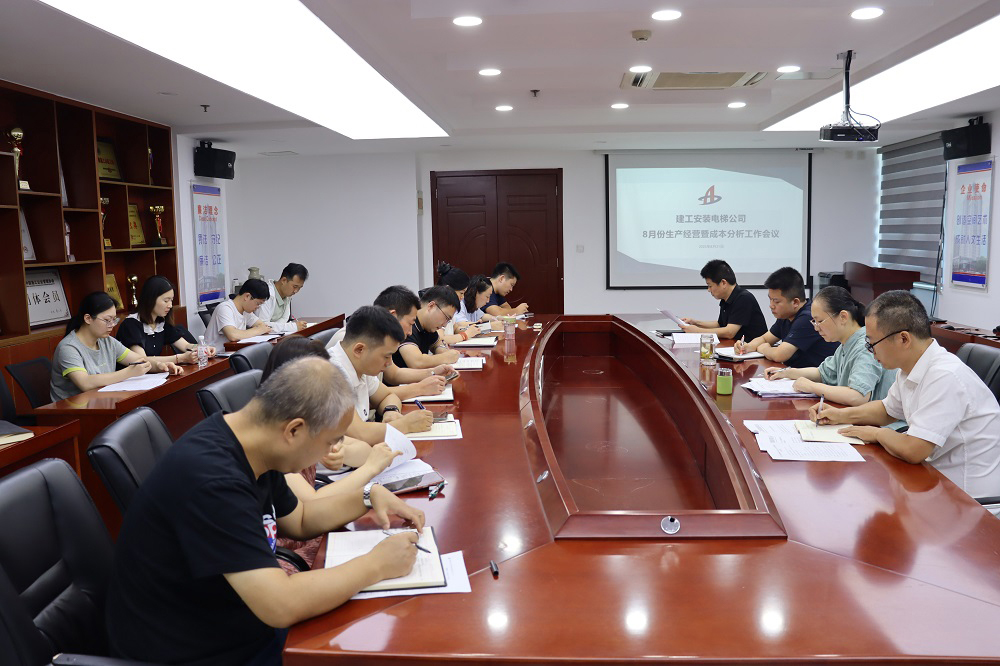 8月21日上午,建工安裝電梯公司召開8月份生產經營暨成本分析會。電梯公司領導班子、機關各部門負責人、項目負責人以及相關部門人員參會。會議由電梯公司副經理李文山主持。